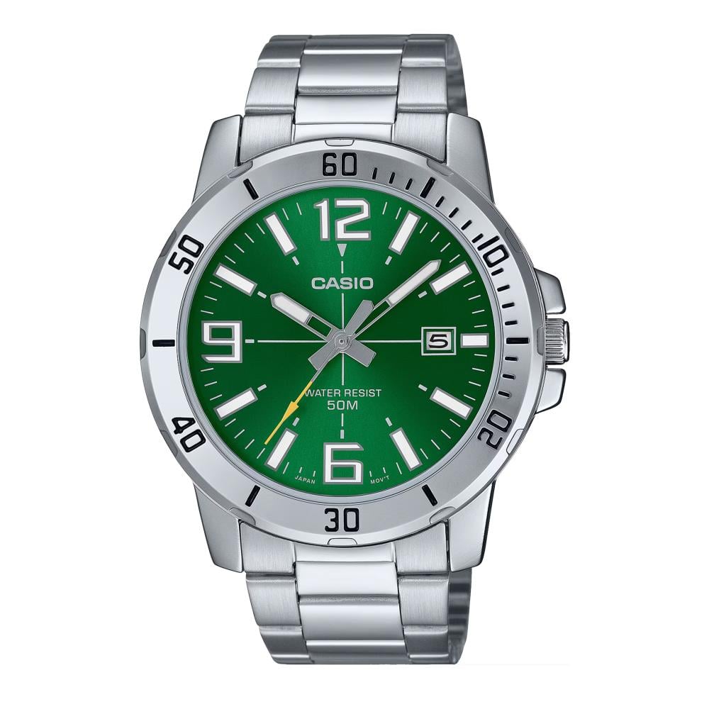 الفت الأنظار بمظهر أنيق وعصري بفضل لمسة نهائية دقيقة وقرص جميل ملون. يضفي الإطار السميك لمسة رياضية على ساعة معدنية تناظرية ذات مظهر كلاسيكي لعقارب الساعات والدقائق والثواني. ناهيك عن أن قدرة الساعة على مقاومة المياه حتى عمق 50 مترًا تخلّصك من القلق عند الاغتسال أو التعامل مع الماء.