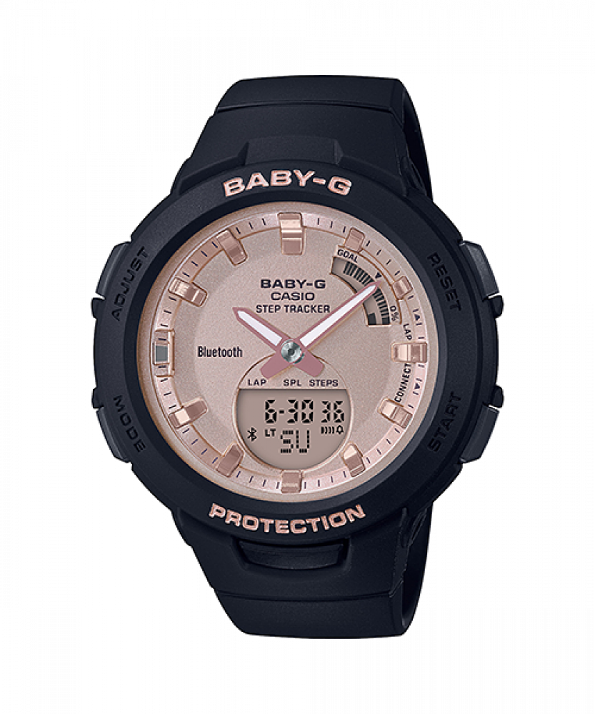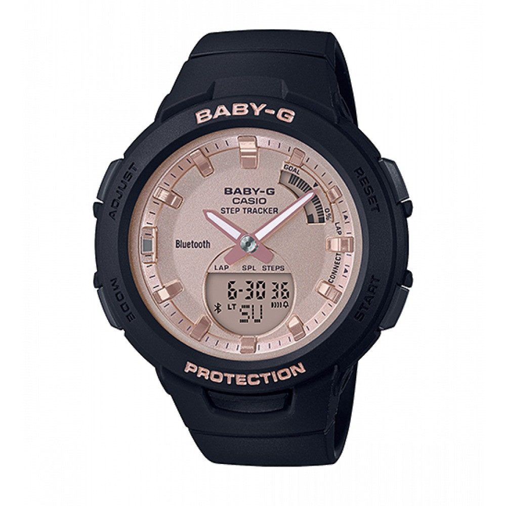 يمكن لهذا الطراز الاتصال بالأجهزة المحمولة، وهذا يدعم التدريب والتمارين الرياضية يوميًا مع توفير الراحة. تستخدم الساعة هيكلاً رفيعًا حتى لا يعوق التدريب. كما أنها مزودة بوظائف مفيدة للألعاب الرياضية وإدارة الصحة اليومية، مثل ضوء LED المزدوج التلقائي ووظيفة قياس عدد الخطوات ومؤقت يمكنه قياس ما يصل إلى 5 × 20 مجموعة وذاكرة تستوعب 200 دورة كحد أقصى. وبالإضافة إلى ذلك، يتم تحقيق إدارة سجلات الأنشطة اليومية وإعدادات التمارين الرياضية من خلال الاتصال بتطبيق "BABY-G Connected" المخصص عبر اتصال Bluetooth®. وتتيح هذه الساعة لمرتديها كذلك حساب السعرات الحرارية وتحديد أهداف لعدد الخطوات. وتعمل أيضًا وظائف الساعة الأصلية مثل ضبط الوقت تلقائيًا من خلال الاتصال بالتطبيق.