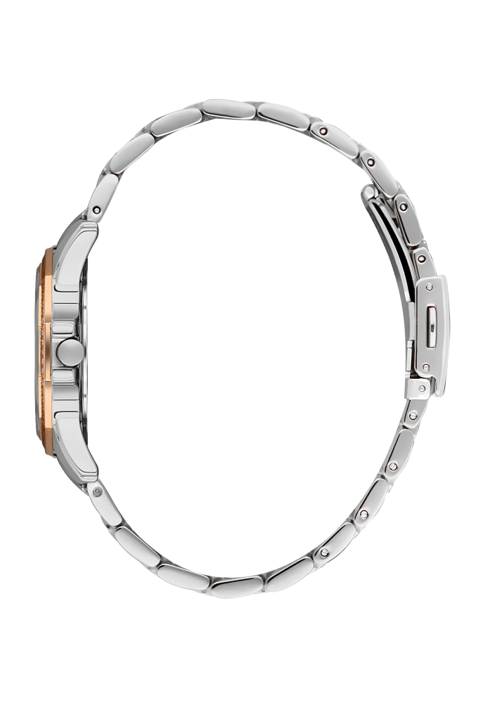 كما أنها مزودة بزجاج مقاوم للخدش يحافظ على جودة الساعة وروعتها. ساعه تناسب اطلالتك المميزه .