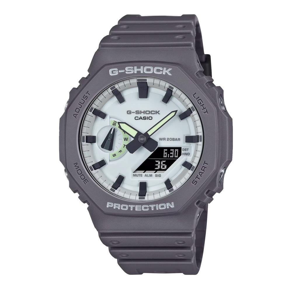 أطلق العنان للإمكانات الكاملة، وأظهر كل ما هو مخفي من ميزات. نقدم إليك سلسلة ساعات G-SHOCK المضيئة في الظلام. تتميز هذه السلسلة بتصميم يتمثل في أجزاء مضيئة مُثبَّتة على قاعدة رمادية داكنة مستوحى من فكرة المواهب الخفية التي يمتلكها كل منا، لكن نادرًا ما نكشف عنها. نبدأ بقاعدة من اللون الرمادي لتمثيل الظلام، ثم نضيف عناصر مضيئة ولمسات من اللون الأبيض إلى وجه الساعة، ما يمنحها مظهرًا أحادي اللون مع لمسة خاصة من الأضواء. ابحث عن مكان مظلم وشاهد هذا التصميم الرائع وهو مضيء بكل تألق.