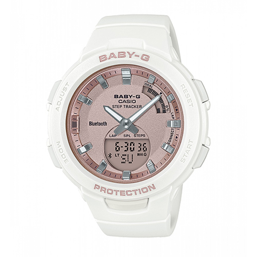 يمكن لهذا الطراز الاتصال بالأجهزة المحمولة، وهذا يدعم التدريب والتمارين الرياضية يوميًا مع توفير الراحة. تستخدم الساعة هيكلاً رفيعًا حتى لا يعوق التدريب. كما أنها مزودة بوظائف مفيدة للألعاب الرياضية وإدارة الصحة اليومية، مثل ضوء LED المزدوج التلقائي ووظيفة قياس عدد الخطوات ومؤقت يمكنه قياس ما يصل إلى 5 × 20 مجموعة وذاكرة تستوعب 200 دورة كحد أقصى. وبالإضافة إلى ذلك، يتم تحقيق إدارة سجلات الأنشطة اليومية وإعدادات التمارين الرياضية من خلال الاتصال بتطبيق "BABY-G Connected" المخصص عبر اتصال Bluetooth®. وتتيح هذه الساعة لمرتديها كذلك حساب السعرات الحرارية وتحديد أهداف لعدد الخطوات. وتعمل أيضًا وظائف الساعة الأصلية مثل ضبط الوقت تلقائيًا من خلال الاتصال بالتطبيق.