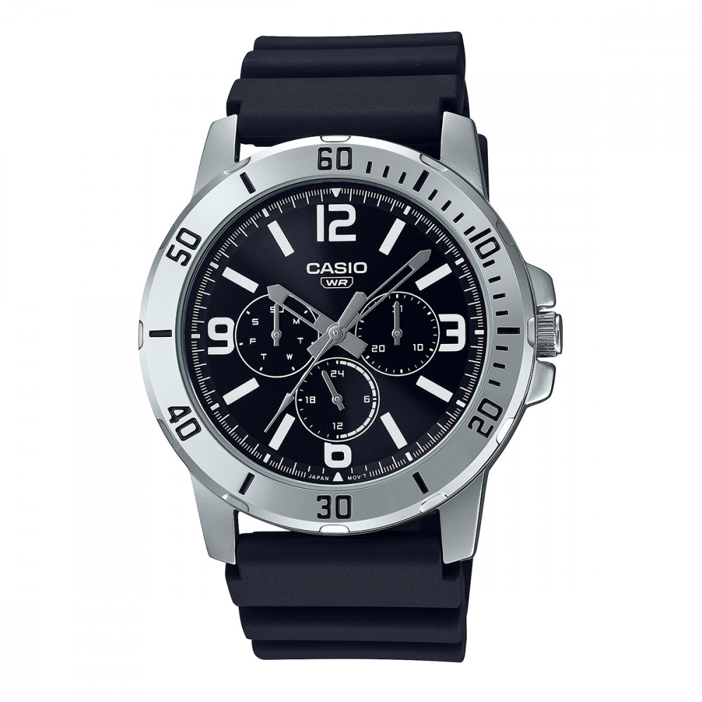 - تسجيل منتظم للوقت: تناظري: 3 عقارب (الساعات، الدقائق، الثواني)، 3 أقراص (التاريخ، تنسيق 24 ساعة)