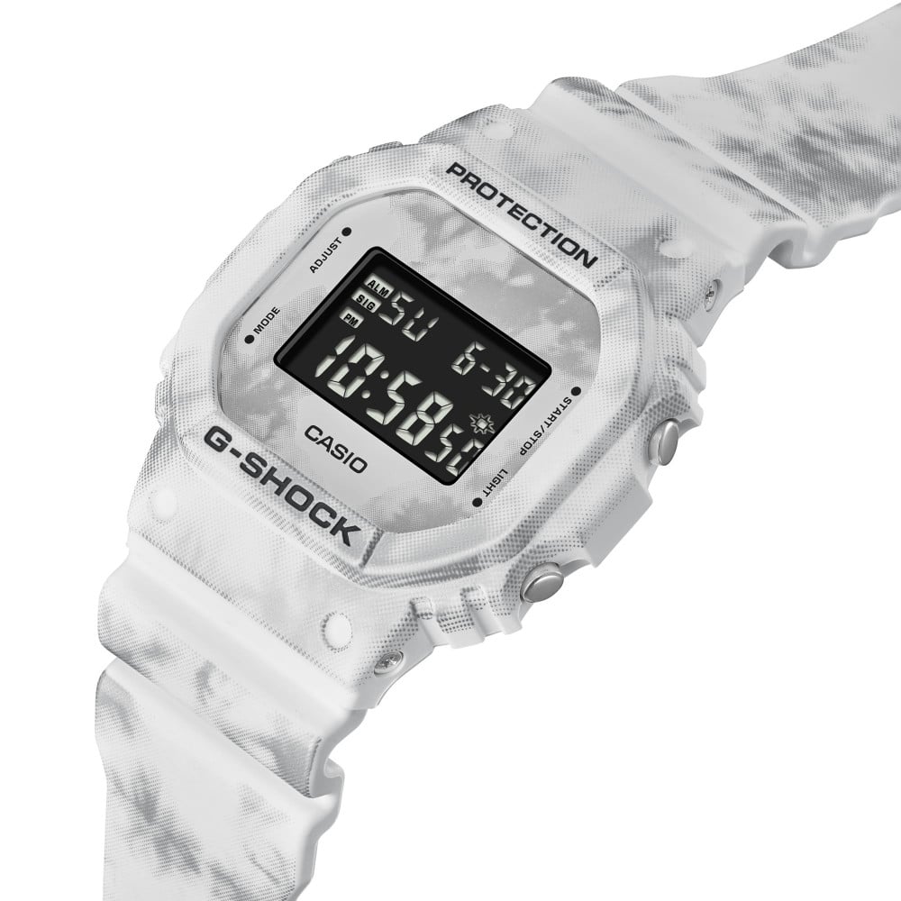 تتميز ساعات Frozen Forest بندفات الثلج الرقمية ضمن نمط تمويه على خلفية بيضاء شتوية، مما يعكس نفحة رائعة من الصقيع.