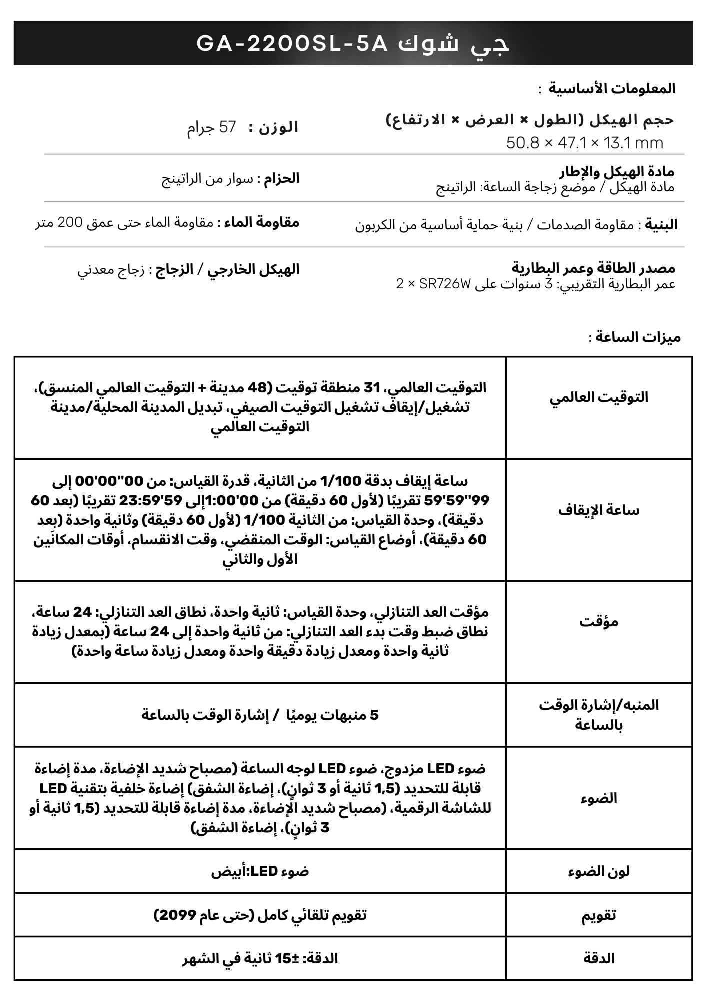 - تسجيل منتظم للوقت: تناظري: عقربان (عقرب الساعات، عقرب الدقائق (يتحرك العقرب كل 20 ثانية))، قرص واحد (الوضع)، رقمية: الساعات، الدقائق، الثواني، مسائي، الشهر، التاريخ، اليوم