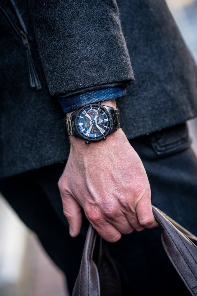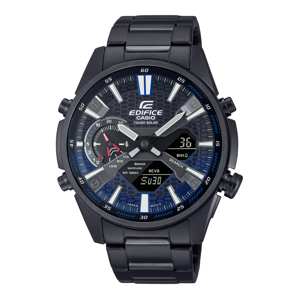 إذا كان شغفك حول السرعة والدقة، فيمكنك ارتداء هذه الساعة الرائعة والحيوية ذات التكنولوجيا المتطورة التي تتميز ببريق السيارات الرياضية الراقية وتفاصيلها. نقدم إليك ساعة من الطراز الرقمي التناظري مع ميزة الارتباط بالهاتف الذكي وتقنية الطاقة الشمسية الرائعة، كل ذلك في تصميم نحيف. يذكّرنا القرص المعدني الشبكي بالجزء الشبكي الأمامي للسيارات الرياضية لإبراز السرعة الرياضية الخالصة. ويضمن ضوء LED المزدوج قراءة واضحة وسهلة، وتمت معالجة زجاج الساعة المزود بالكريستال الياقوتي والمقاوم للخدش باستخدام طبقة مقاومة للوهج لتوفير رؤية أفضل. يوفّر نظام Tough Solar كل ما تحتاج إليه من قوة لتستمتع بالوظائف الكاملة لهذه الساعة. ويمكنك المزامنة من خلال هاتفك الذكي عبر Bluetooth® لعرض التوقيت بدقة أينما ذهبت. كما يمكنك الاستفادة من التطبيق لإدارة التوقيت العالمي وإعدادات المنبه بسهولة. ويمكنك نقل بيانات ساعة الإيقاف التي تقاس بالملي ثانية إلى هاتفك الذكي والعثور على هاتفك بالضغط على أحد أزرار الساعة وتنظيم وقتك ومكانك وغير ذلك!